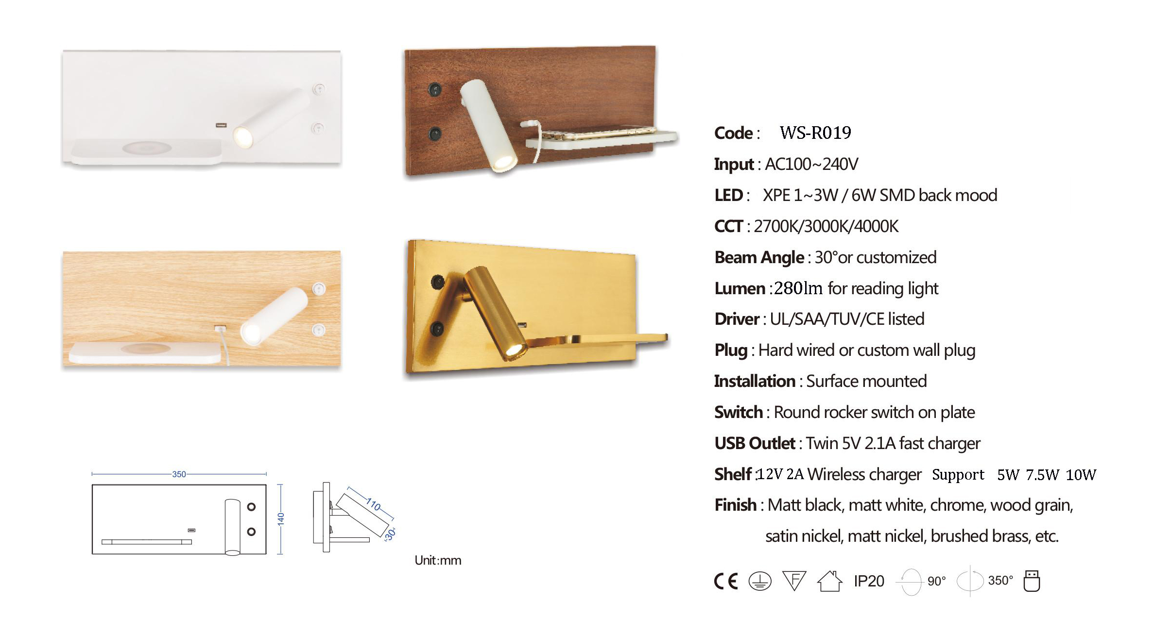 Indoor Wall Reading Light Beside bed Hotel Adjustable reading lamp LED headboard reading Lamp