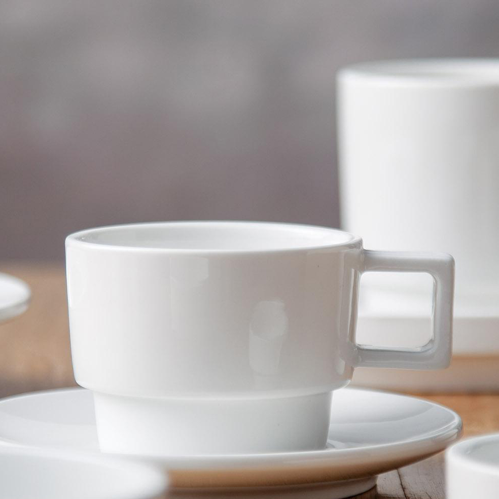 White Porcelain coffee cup with saucer handmade plain white porcelain mug sustainable ceramic cups Set